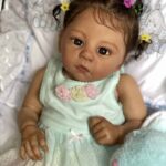In 2011, Willow Hannah Awake was my very first full body silicone poured in Solid Platinum Ecoflex Silicone -she is not as firm as dragon skin, and not as soft as Eco 30. Attached Arms, Attached head. Head does not turn. Willow is poured in a caucasian silicone and blushed and shaded in the creasing. This silicone was created before we started to paint them like a reborn, so she has no mottling. New Matte Finish. Original Hair. Comes home in a handmade quilt.